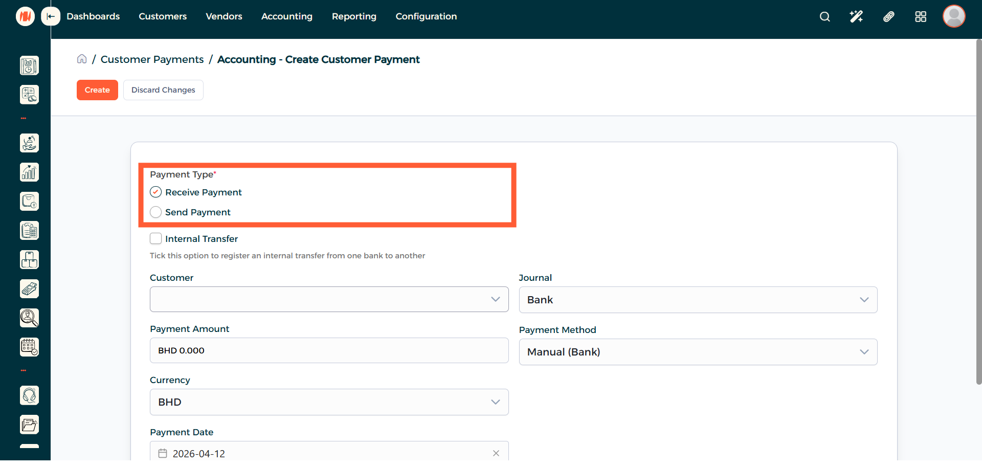 Use Receive Payment to get the payment from a customer. Use the Send Payment to give a customer funds.
