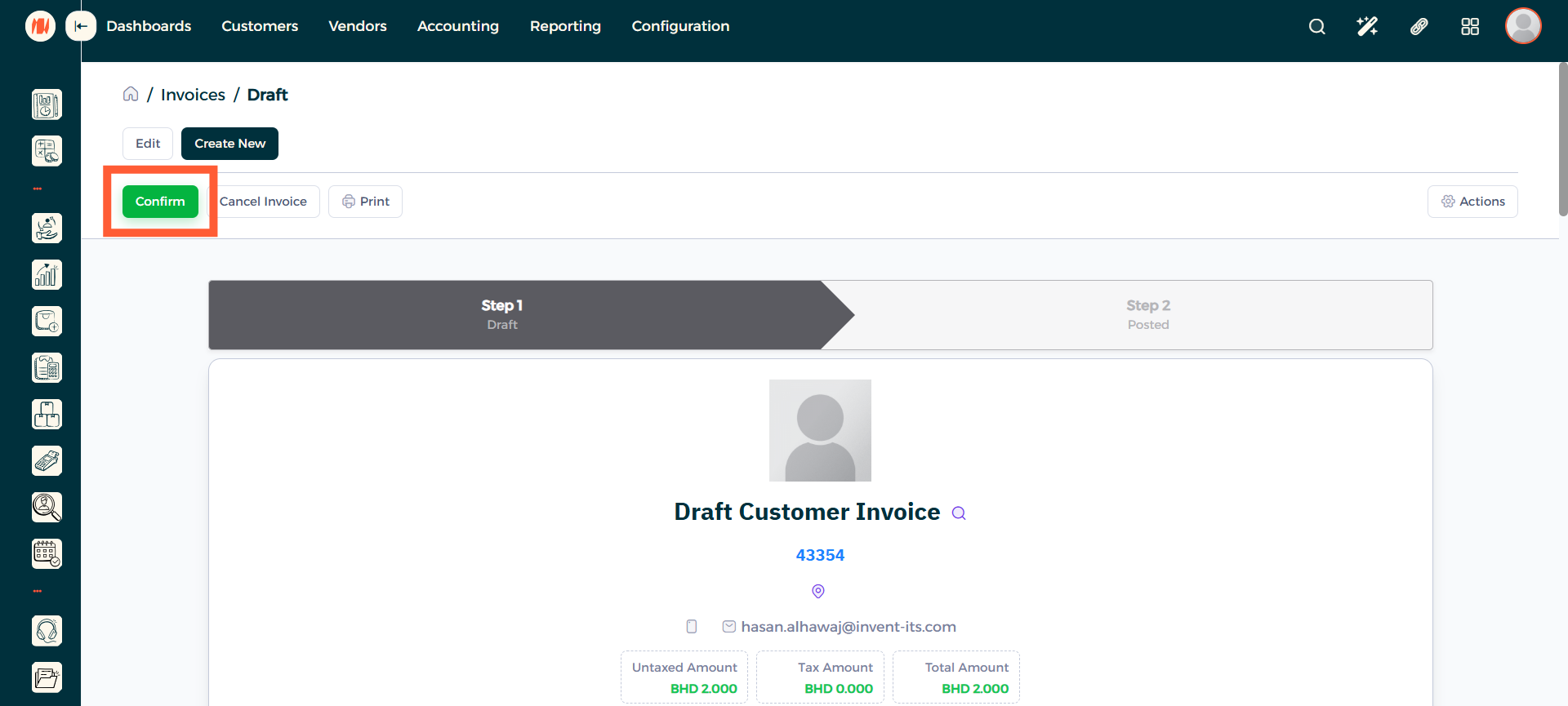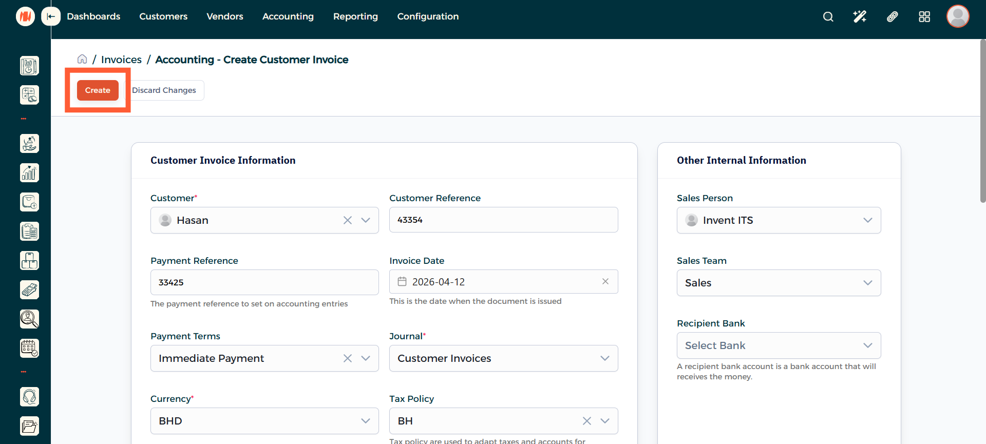 Here select the customer and then fill out all the details. After that scroll down choose a product and then the final step is to press create.
