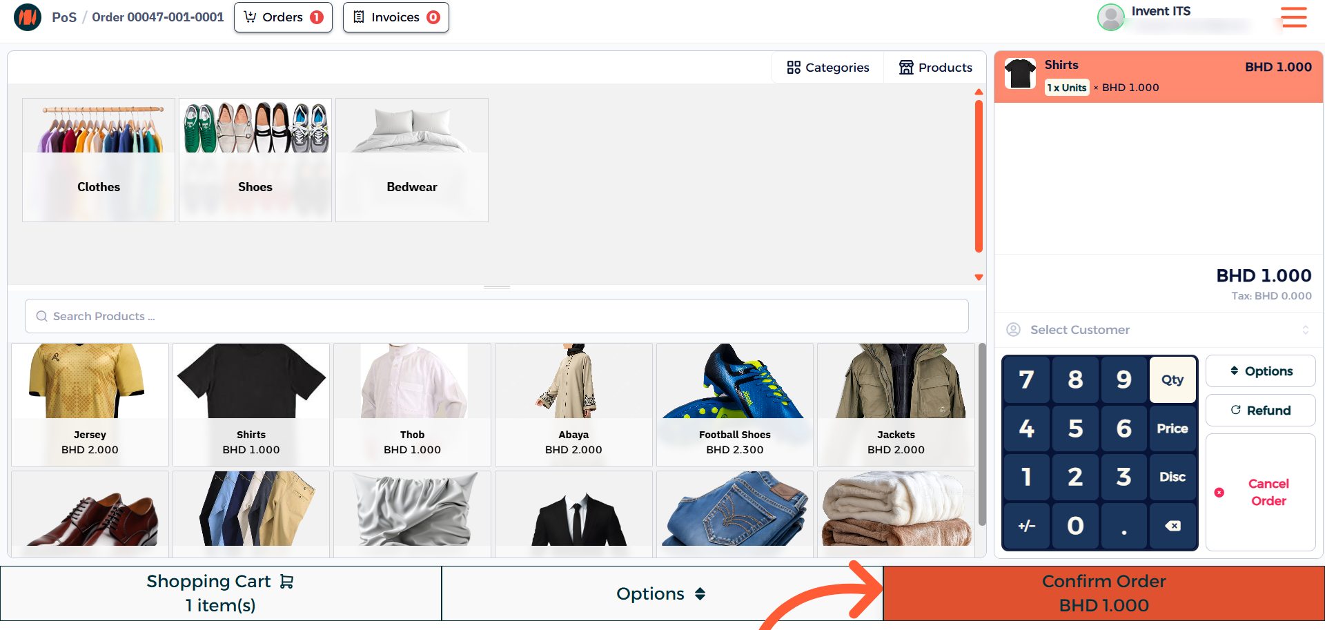 After confirming the invoice, scroll down and see the customer wallet. Press on the small blue icon allocate the funds and complete the order.