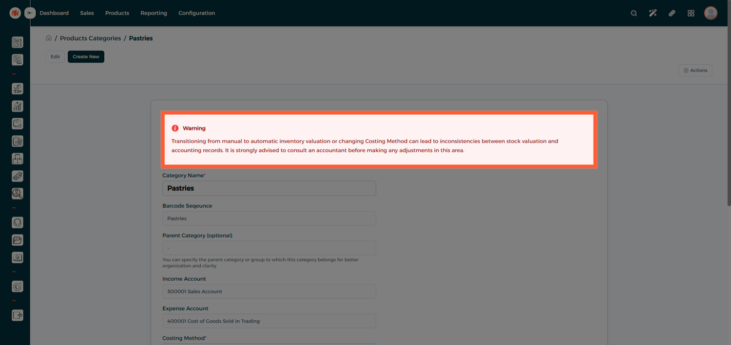 Avoid switching between manual and automatic inventory valuation or changing the costing method, as this may cause inconsistencies between stock valuation and accounting records.