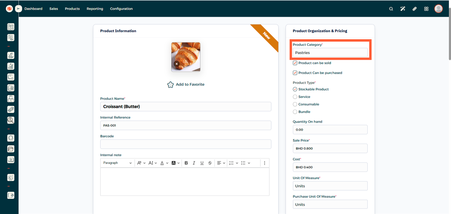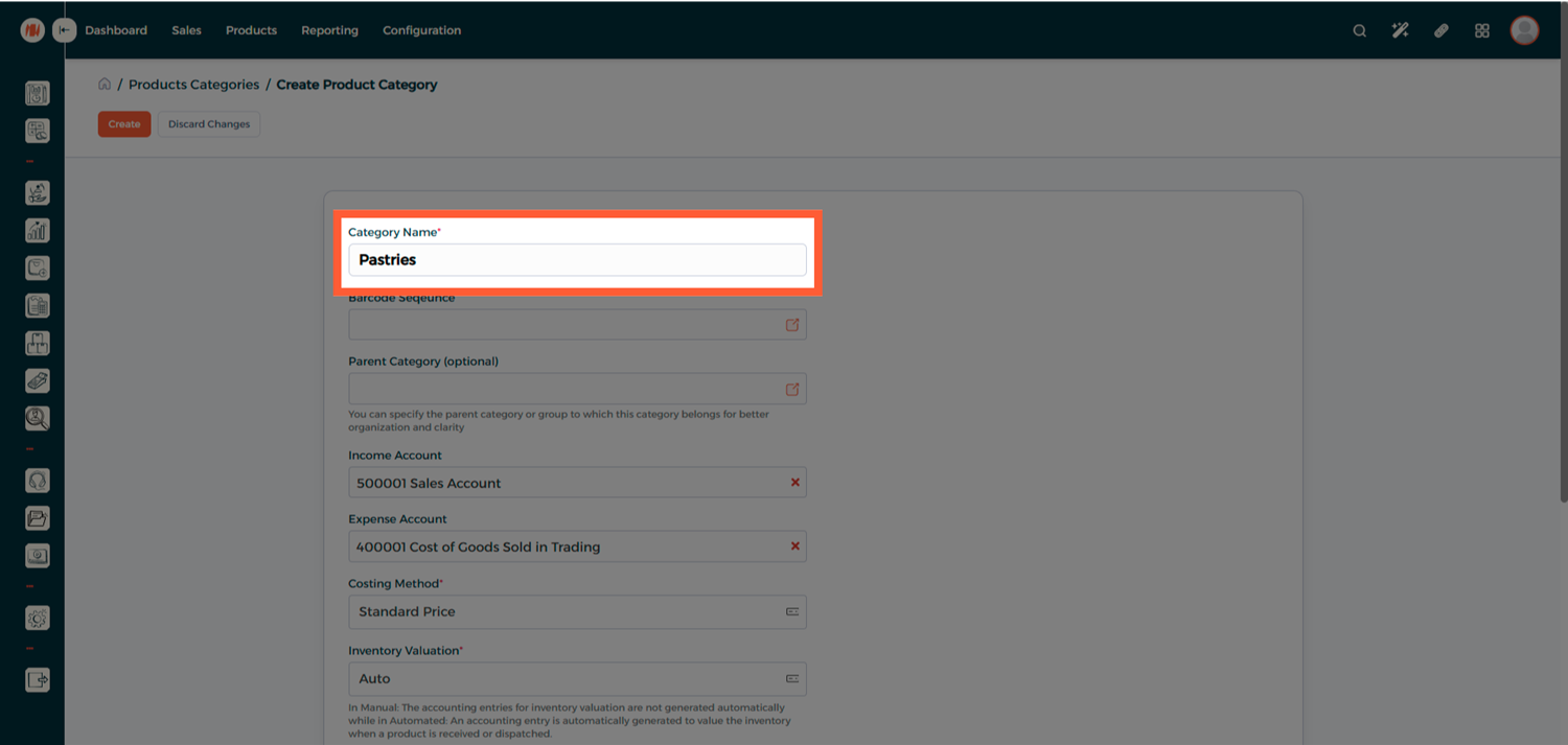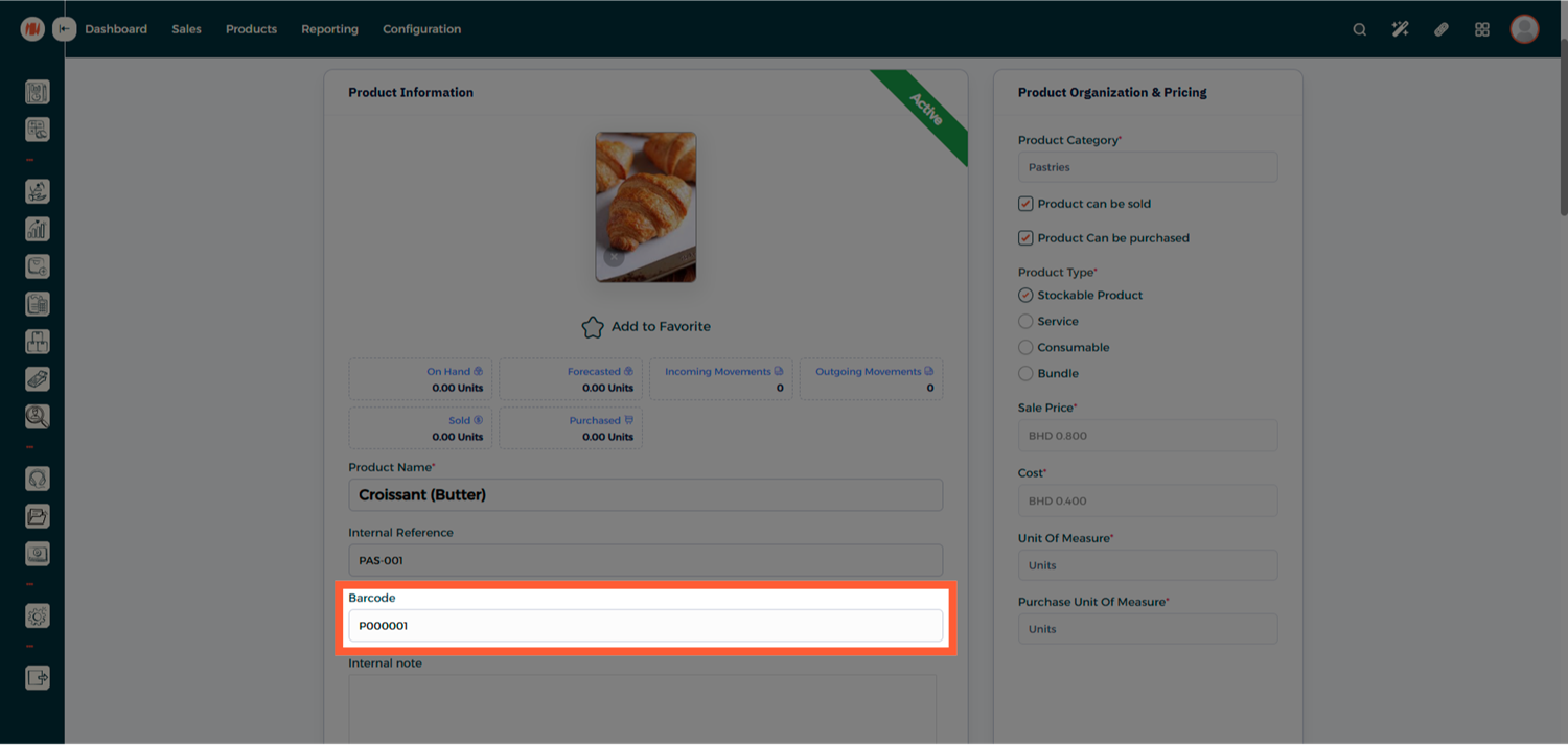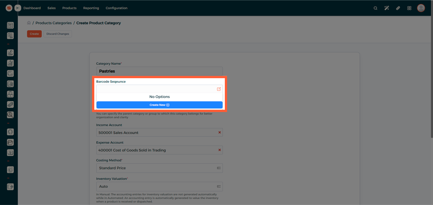 - Always create and configure the barcode sequence at the category level before adding products to ensure consistent barcode generation.